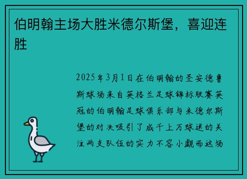 伯明翰主场大胜米德尔斯堡,喜迎连胜